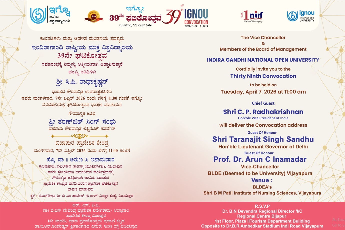 IGNOU Invitation 39th Convocation to be held on 07th April, 2026 at 11.00AM